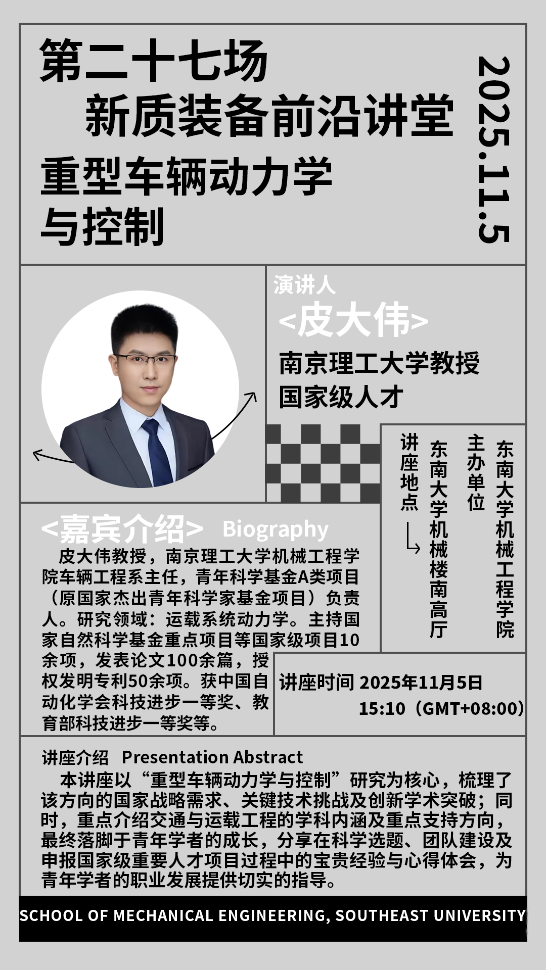 机械工程学院邀请杰出校友皮大伟教授作专题分享 助力青年学者成长