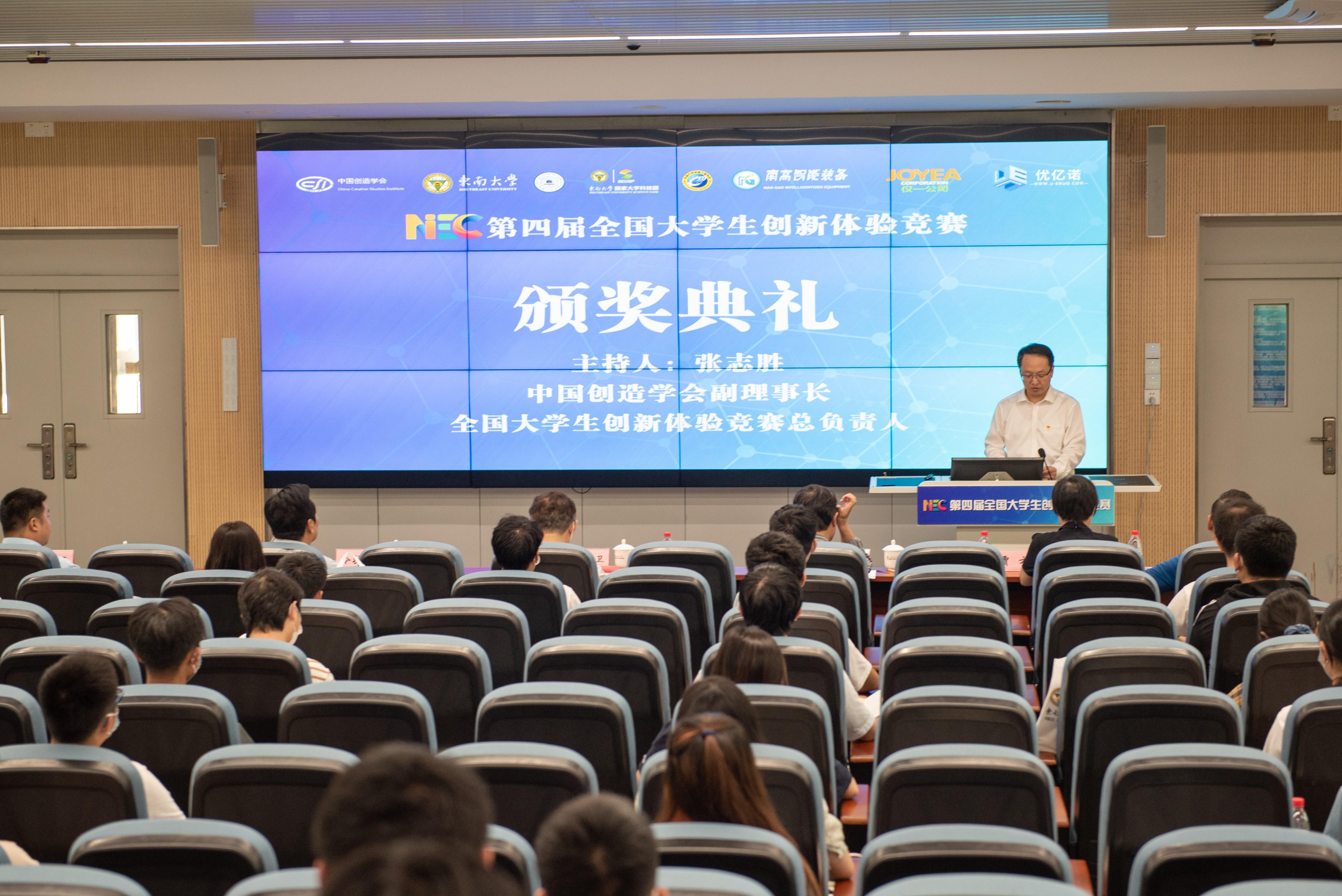 6月6日,第四届全国大学生创新体验竞赛颁奖典礼在东南大学九龙湖校区举行。本次竞赛由中国创造学会主办,东南大学和安徽工业大学联合承办,东南大学国家大学科技园、安徽工业大学创新教育学院、半岛线上平台组织实施。中国创造学会常务副理事长张亚雷、东南大学党委副校长黄大卫、澳门中西文化创意产业促进会理事长李嘉曾出席并致辞,来自东南大学、安徽工业大学、中国创造学会、竞赛组委会及支持单位的代表以及部分参赛师生等参加了典礼。典礼由半岛线上平台党委书记张志胜主持。