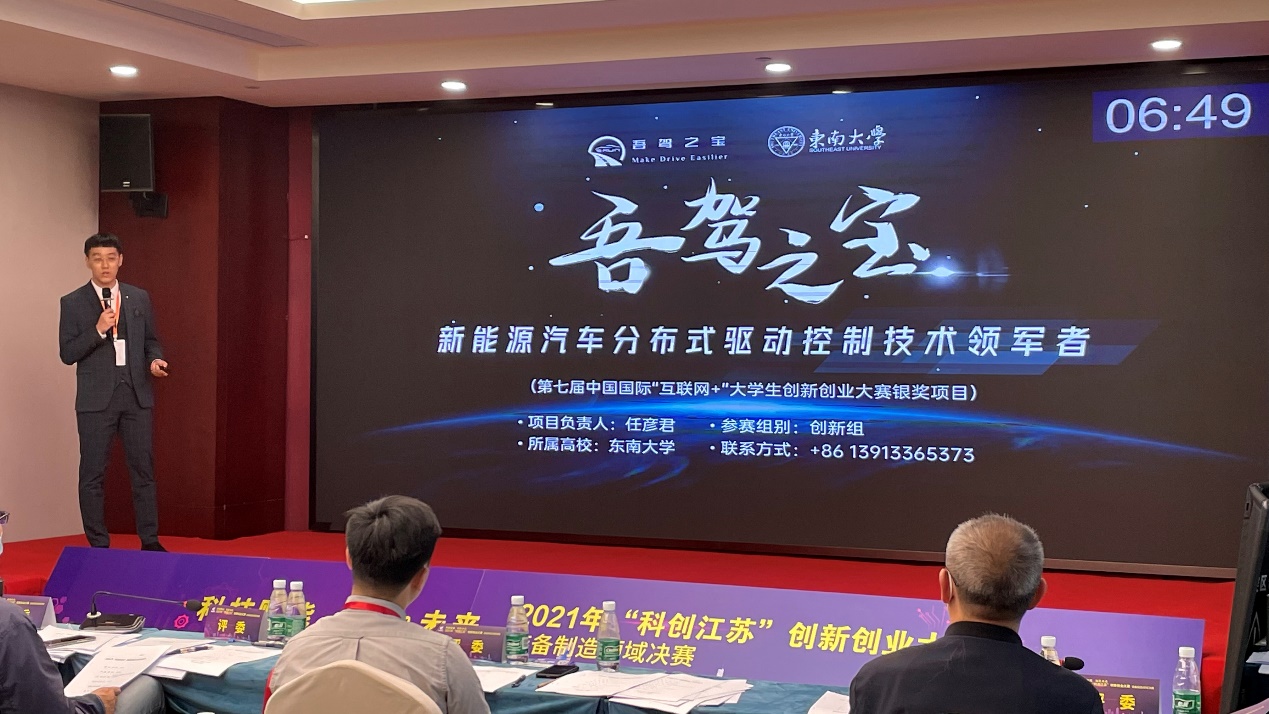 江苏省科协党组成员、副主席冯少东,团省委副书记张迎春,南京工程学院副校长朱晓春,省工信厅产业人才与合作处二级调研员秦飞出席了开幕式并共同启动大赛。在装备制造领域的决赛中,来自清华大学、同济大学、南京理工大学、东南大学、中国中车、国家电网、中电十四所等知名高校和大型国企的30个创新创业团队同台竞技。半岛线上平台博士研究生任彦君牵头完成的“吾驾之宝:新能源汽车分布式驱动控制技术领军者”项目,通过精彩项目路演和答辩,得到了专家评审组一致认可,成功斩获大赛一等奖。我院近年来持续推动创新创业和实践育人工作深入开展,不断完善创新人才培养有效模式、激励方式和长效机制,强化学生科学精神和创新实践能力培养,该奖项是我院在“双创”领域斩获的又一重量级荣誉。