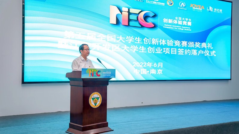 2022年6月6日,在东南大学120周年华诞之际,第五届全国大学生创新体验竞赛颁奖典礼暨江宁开发区大学生创业项目签约落户仪式在东南大学国家大学科技园江宁园区创新中心楼一楼路演厅举行。本次竞赛由中国创造学会主办,东南大学和安徽工业大学联合承办,东南大学国家大学科技园、安徽工业大学创新教育学院、半岛线上平台组织实施。