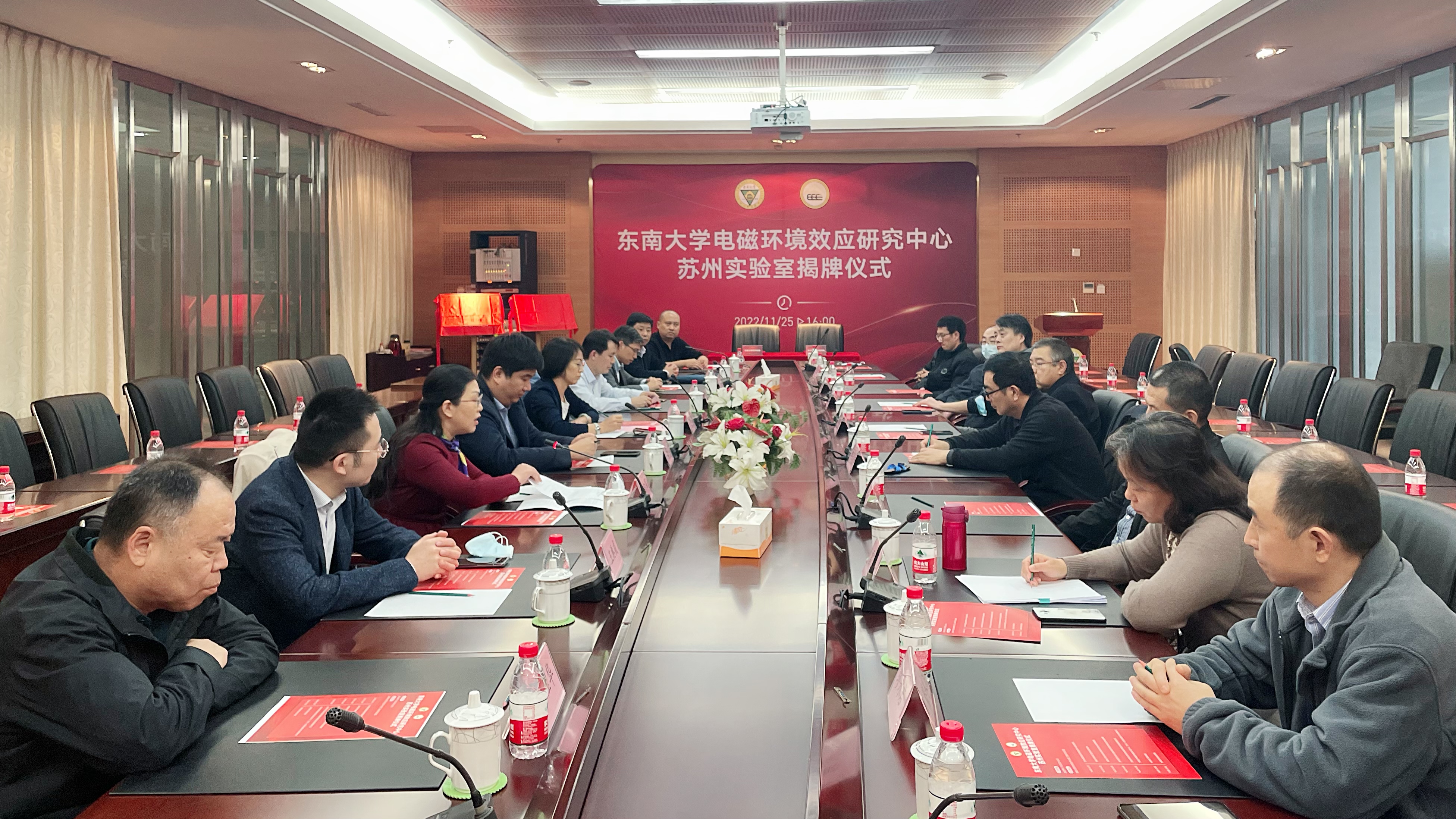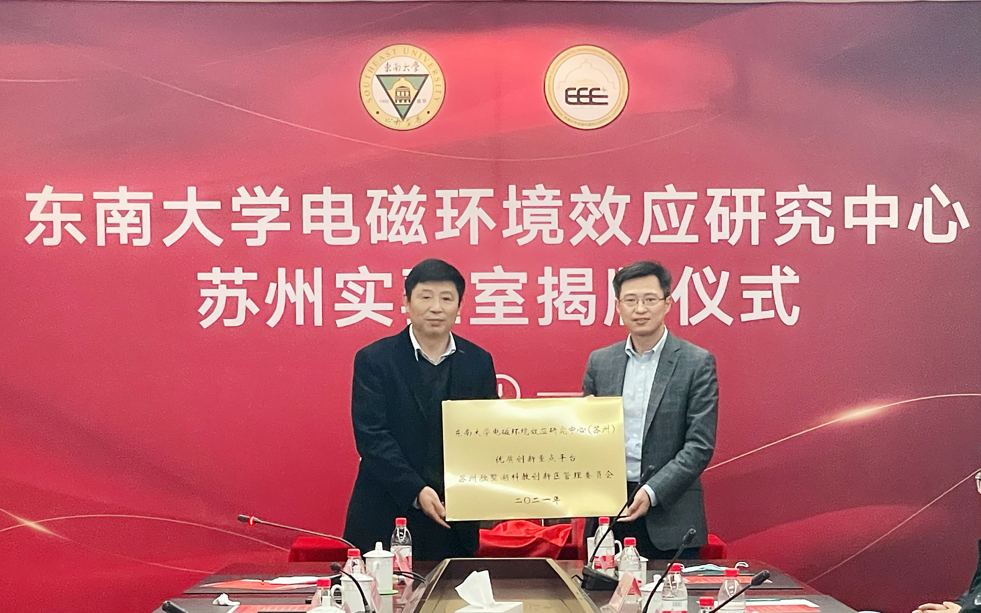 11月25日下午,东南大学电磁环境效应研究中心苏州实验室揭牌仪式在东南大学苏州校区举行。苏州独墅湖科教创新区高校合作发展局局长严海清,中国电子技术标准化研究院华东分院院长丁然,东南大学先进技术与装备院副院长陈力,半岛线上平台副院长刘晓军,苏州校区管委会副主任于向军,东南大学电磁环境效应研究中心相关人员及有关方面代表参加了仪式。