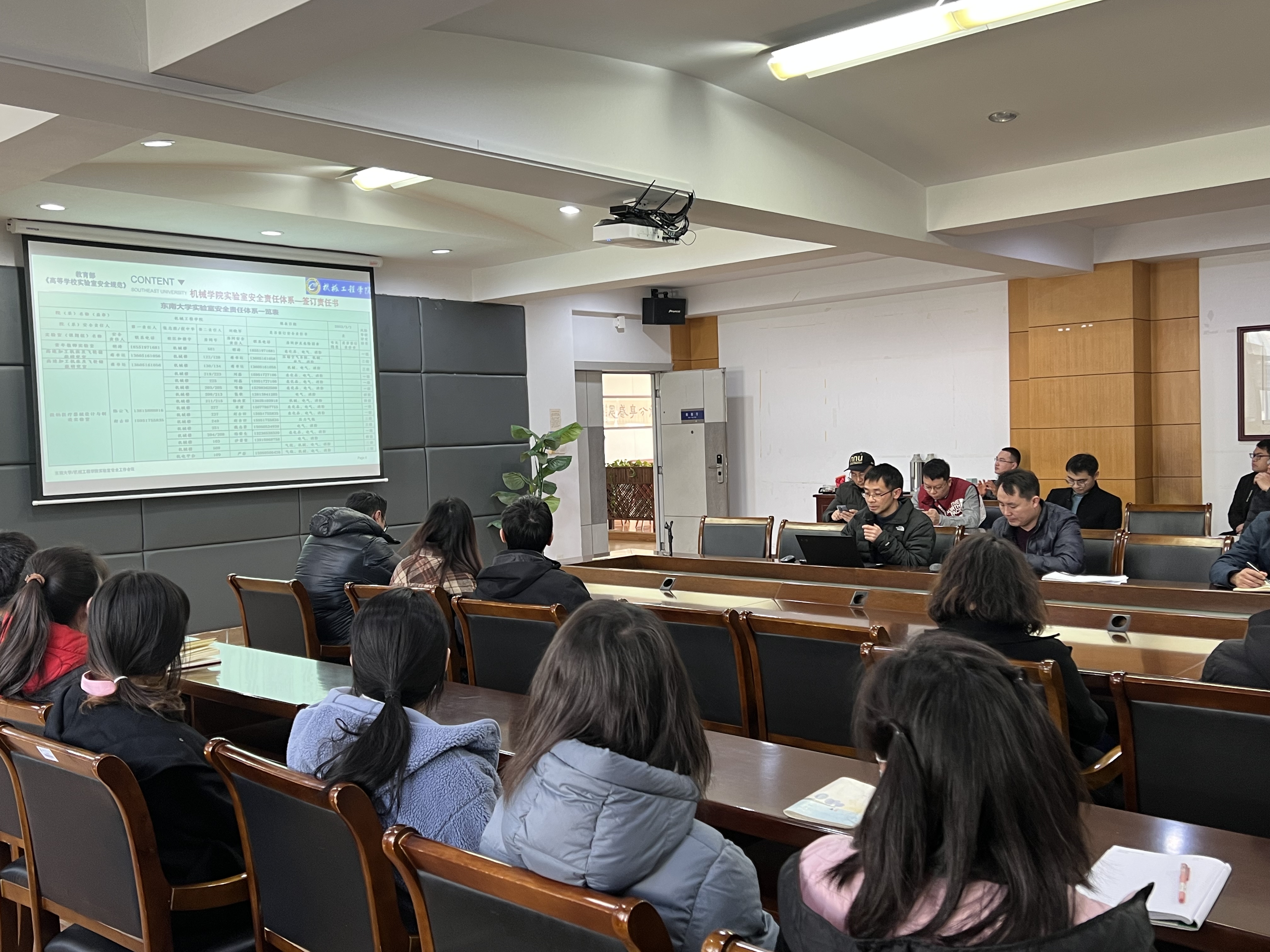 为规范我院实验室安全管理工作,机械学院于3月2日在南高厅召开了实验室安全工作会议,院长倪中华、副院长刘晓军、学院实验室及重要场所安全自查自纠工作组成员、学院各实验室负责人、危化品实验室的学生代表参加了会议,会议由刘晓军院长主持。