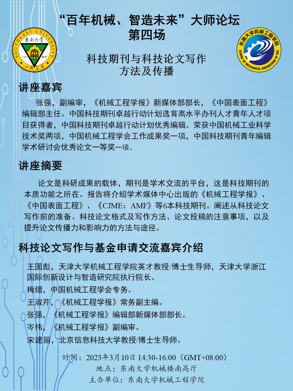 “百年机械、智造未来”大师论坛第四场:张强编审——科技期刊与科技论文写作方法及传播