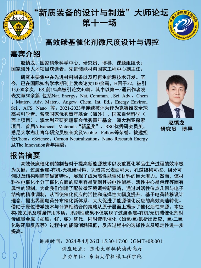 “新质装备的设计与制造” 大师论坛第十一场:赵慎龙研究员——高效碳基催化剂微尺度设计与调控