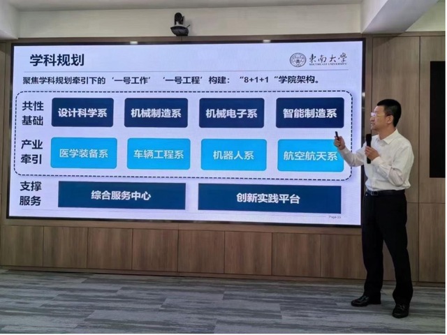 机械工程学院费庆国院长向校友们汇报了学院发展情况及未来发展方向,机械工程学科是学校12个入选国家双一流建设学科之一。