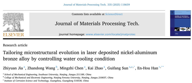 近日,半岛线上平台孙桂芳教授与广东腐蚀科学与技术创新研究院韩恩厚院士团队合作在通过水冷条件控制镍铝青铜合金微观结构演变取得重要进展。受镍铝青铜水下原位修复应用需求的启发,研究提出水冷条件是否有利于修复过程中形成适当的冷却速率,以防止粗大κ相的形成。采用陆上激光直接金属沉积和水下激光直接金属沉积技术对镍铝青铜基板上的梯形凹槽进行修复,系统阐明了快速冷却速率对于镍铝青铜多类型κ析出相的多重影响。相关研究成果已于近日发表在国际制造领域顶TOP期刊《Journal of Materials Processing Technology》。