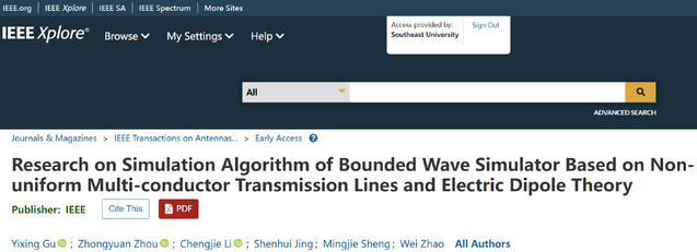 近日,我院机械电子系电磁环境效应研究中心在微波天线领域TOP期刊《IEEE Transactions on Antennas and Propagations》发表研究成果——“Research on Simulation Algorithm of Bounded Wave Simulator Based on Non-uniform Multi-conductor Transmission Lines and Electric Dipole Theory”。
