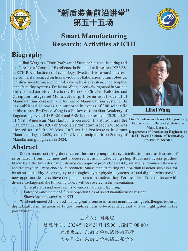 “新质装备前沿讲堂”第五十五场:Professor Liuhui Wang——Smart Manufacturing Research: Activities at KTH