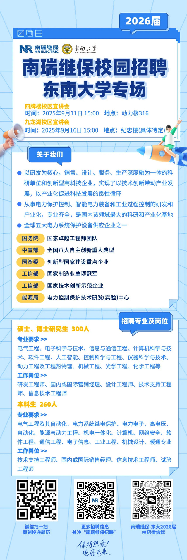 宣讲会 | 南瑞继保校园招聘东南大学专场
