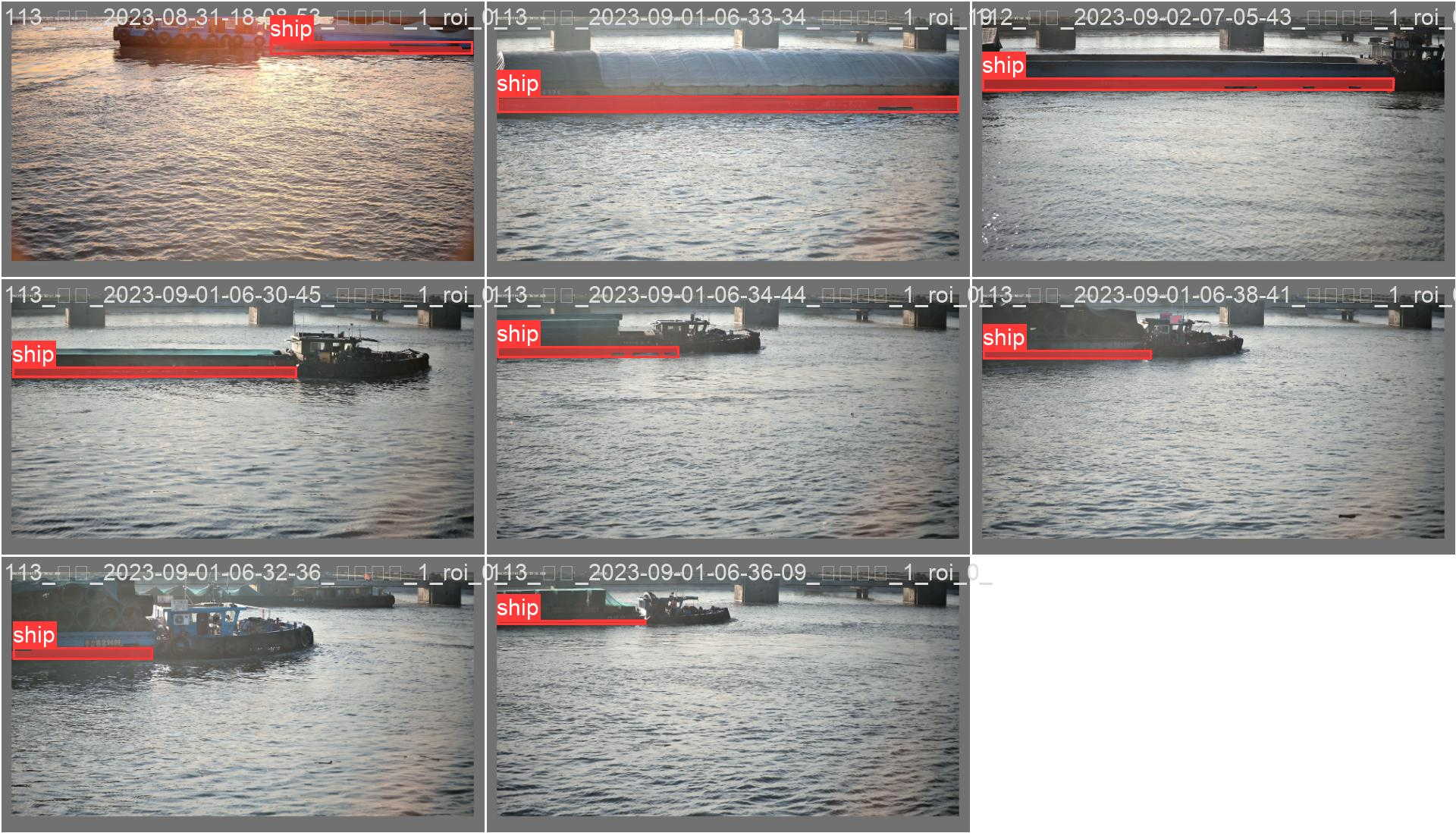 通过对数据库中两千余张图片进行标记,使用yolov5进行图像识别训练,将训练得到的权重文件导入detect图像检测程序中,分别从数据库和网络上寻找不在训练集中的图片进行验证,船舶封仓识别结果基本准确。
