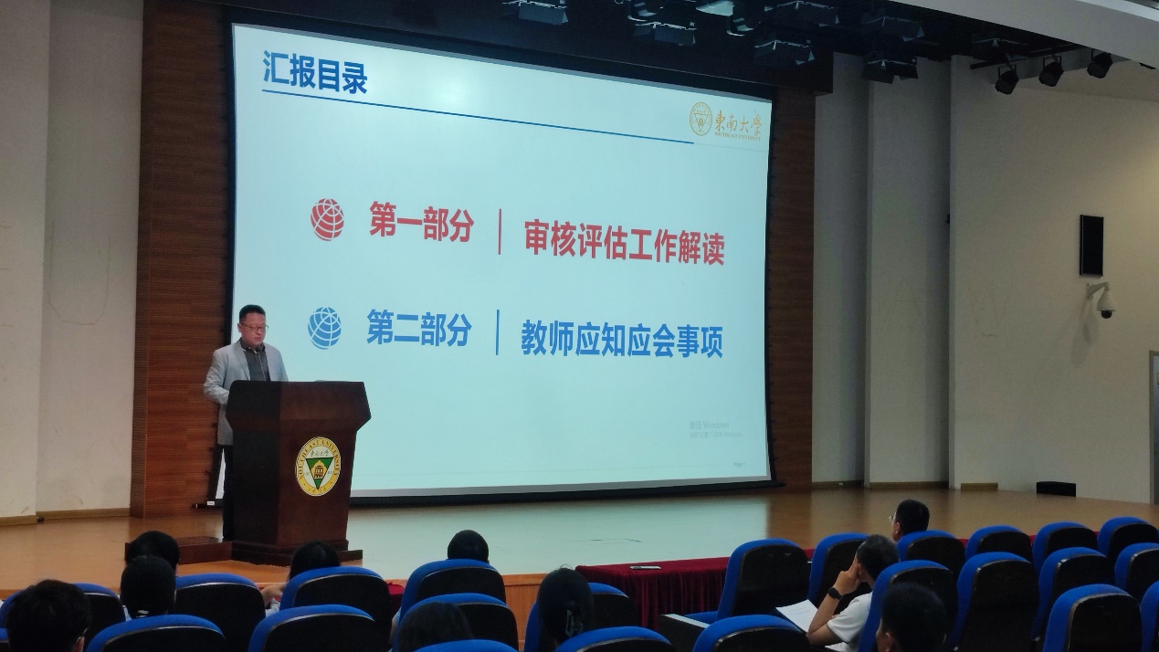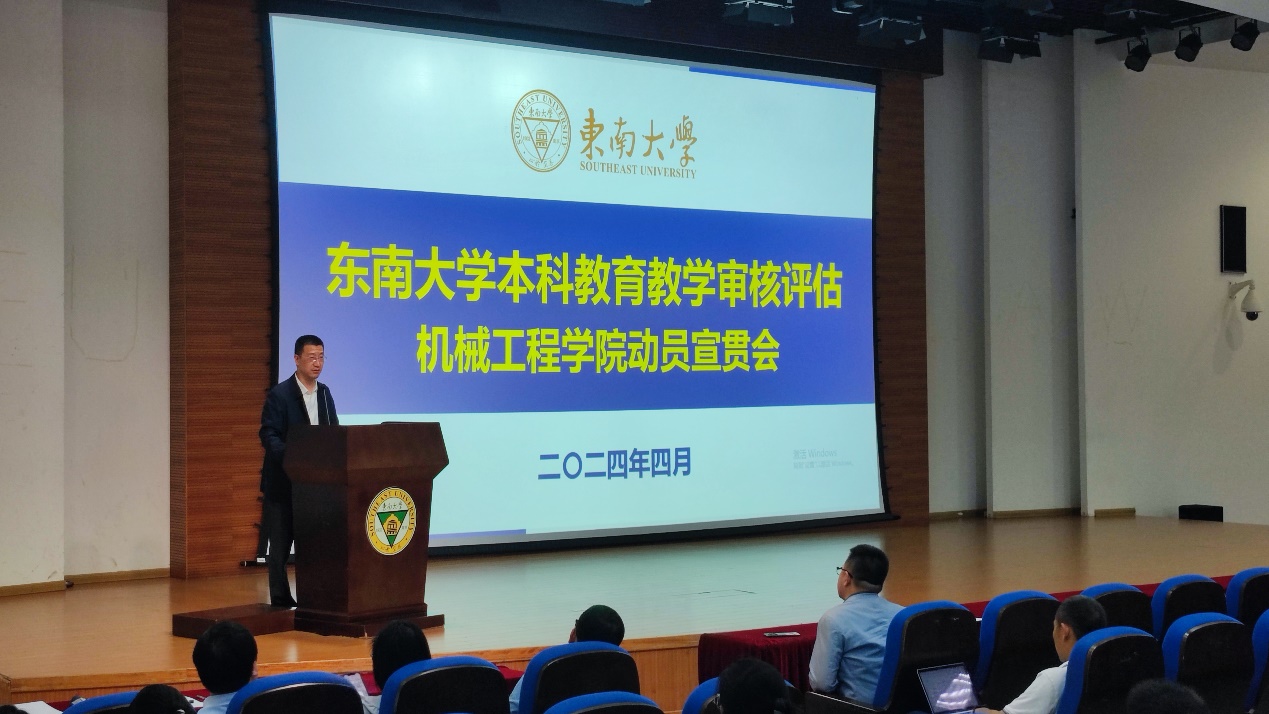 为进一步落实新一轮本科教育教学审核评估迎评工作,细化部署各项任务,2024年4月25日中午,机械工程学院本科教育教学审核评估动员宣贯会在东南大学九龙湖校区纪忠楼报告厅顺利召开。机械工程学院院长费庆国、党委副书记王斌、副院长毕可东、副院长陈震以及全体教职工参加动员宣贯会,会议由毕可东副院长主持。