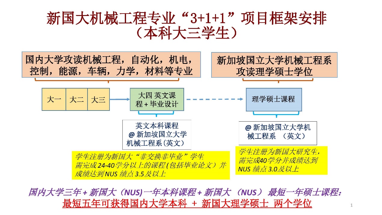 现启动2025年新加坡国立大学机械工程专业“3+1+1”项目学院预申报工作现已启动,有关事项通知如下: