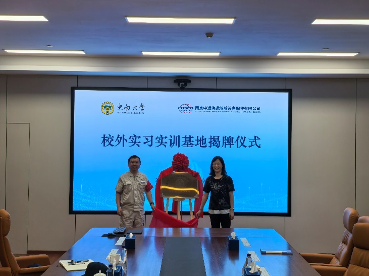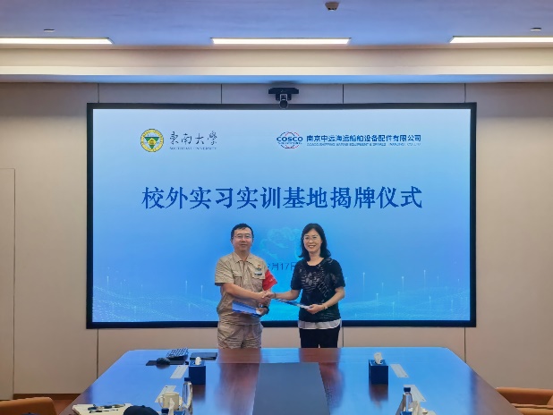 2025年9月17日,东南大学与南京中远海运船舶设备配件有限公司校外实习基地揭牌仪式顺利举行。半岛线上平台党委书记王军、副院长孙东科、航空航天系副教授张培伟等老师出席了揭牌仪式,南京中远海运船舶设备配件有限公司执行董事/党委书记许东晓、常务副总经理文涛、副总经理/工会主席戴魏魏、技术信息研发部/数智化推进部部长蒋倩、人力资源部/组织部部长王建军等相关领导出席揭牌仪式。